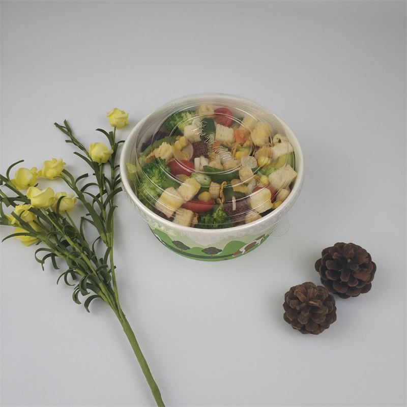 Salatskåle er med PE-coated, fugt- og fedtbestandige; Sikker til brug i mikroovne. Disse skåle er genanvendeligt, fødevaregodkendt, stærkt papir, der hjælper med at modstå snit og giver styrke og stivhed.